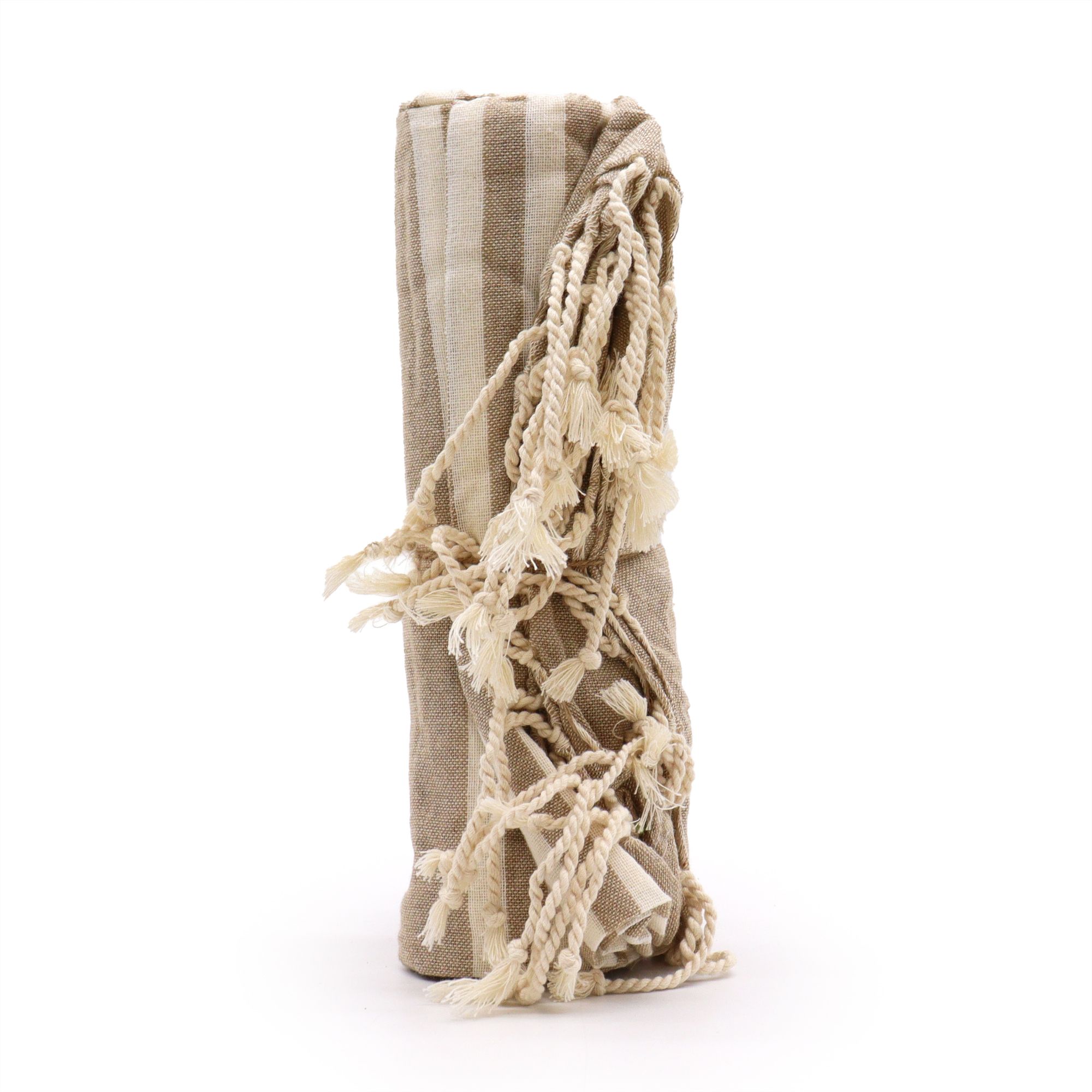 The warm sand tone and subtle stripe detail give it a natural, understated look that pairs effortlessly with neutral wardrobes and coastal settings. Easy to fold and travel with, it’s the perfect companion for holidays, beach days, spa visits or relaxed summer afternoons.