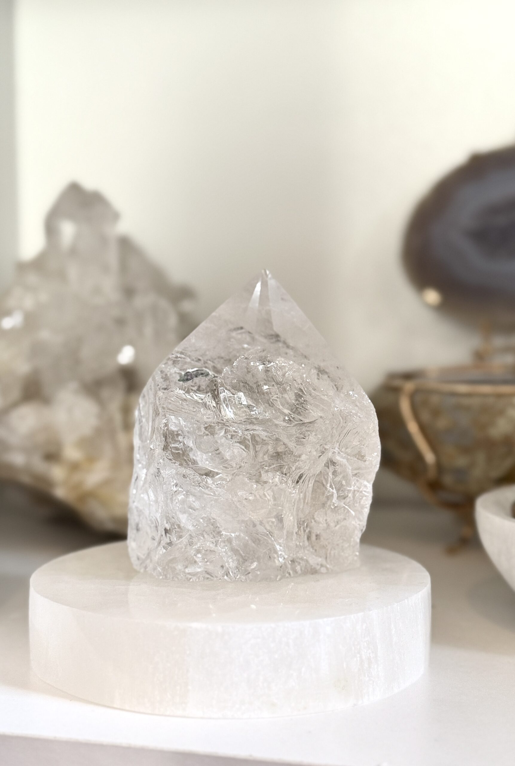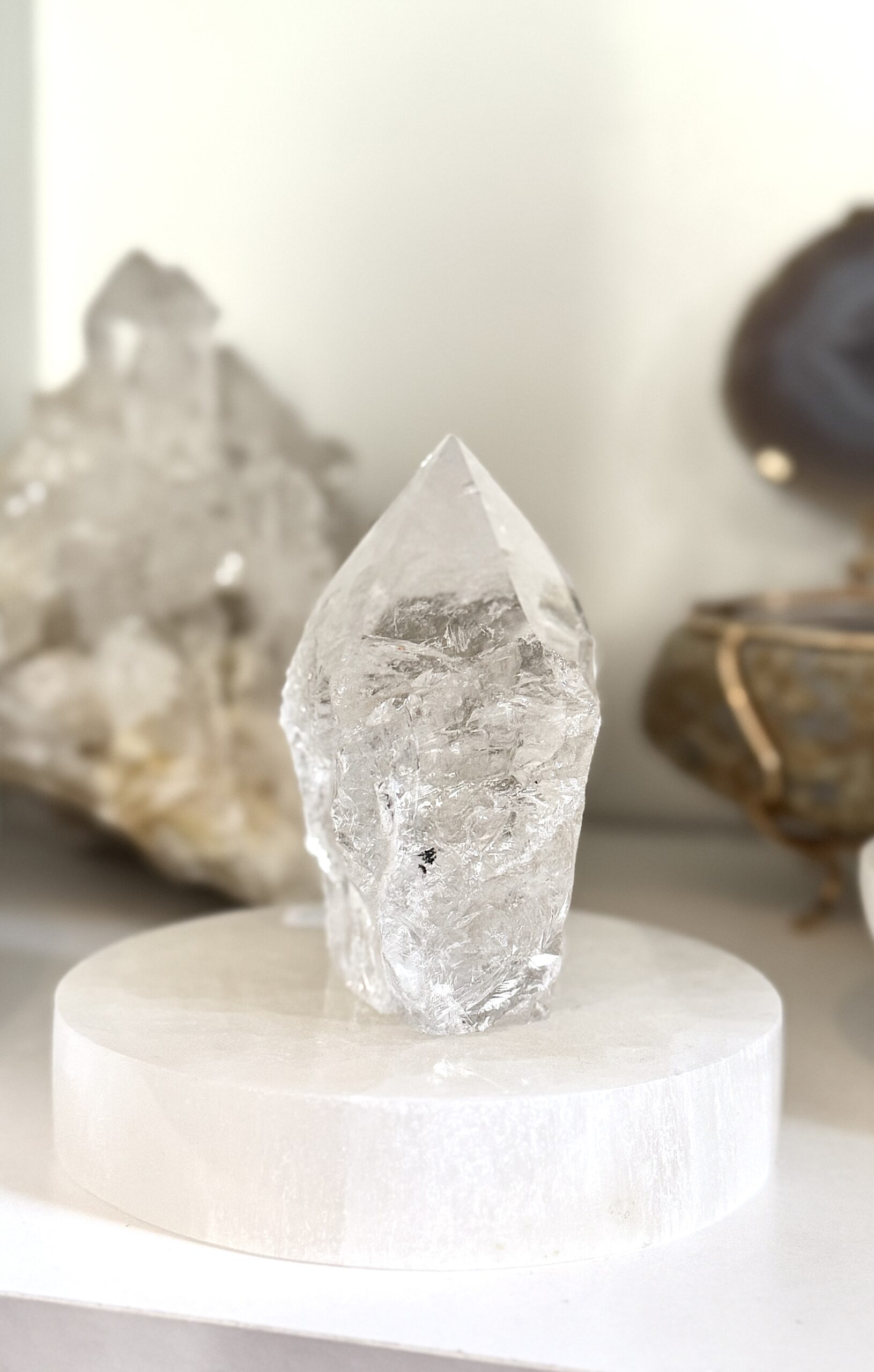 The point formation directs energy upward and outward, making it ideal for manifestation work, meditation, and charging other crystals.